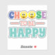 Fun design that says Choose in colourful letters and two yellow happy faces where the O should be, To Be in orange text and Happy in a teal text.