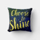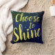 A far out pillow with a star studded background and the words "Choose to Shine" in yellow script.