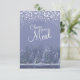 Blue winter meal options choices cards. Ideal to give guests prior to a Christmas party meal or winter wedding feast or for other festive dining events. Personalise with your own choice of meal options on the reverse. Watercolor and gouache painting featuring blue pine trees covered in snow by the lake and design by Sarah Trett for www.mylittleeden.com on zazzle.