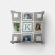 Upload four of your favourite photographs and then choose a coordinating or contrasting colour for the background and the large monogram letter in the centre to personalise it even further! Shown here with four gradauation prom dress photographs, a medium grey coloured background and a matching shade of aqua for the monogram initial. Pics are framed nicely inside double white boxes, creating a geometric pattern with solid white squares in the four corners. The reverse side is solid colour to match. Works best with pictures that are already square shaped, perfect for instagram photos! It will automatically crop your images to fit/fill the square. Choose your colours for the pillow and the text using the advanced customisation options. All sample photos are mine, replace with your own.