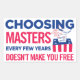 Whether you believe in the importance of voting or think it's at best a waste of time, it's difficult to argue against the fact that the spectrum of choice in American politics is horribly narrow.  Each election, it amounts to choosing between a new or incumbent array of masters.