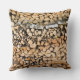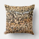 Throw pillow with chopped wood logs stacked on a pile ready for use in a fireplace.
