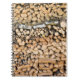 Notebook with chopped wood logs stacked on a pile ready for use in a fireplace.