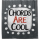 "Chords Are Cool" is a cute text design in grey with black and red text, along with a white accent shape and white textured whimsical dots surrounding it.