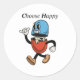 Chose happy with pill groovy character design classic round sticker