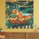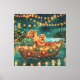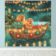 Set sail into the magic of the holiday season with this beautifully detailed illustration, showcasing a proud dog sitting in a festively decorated boat, gliding across a serene Christmas lake. The twinkling lights from nearby pine trees reflect off the water, casting a warm, festive glow that enhances the cosy ambiance. Ornaments dangle from the boat's sides, while glowing lanterns light the way, creating a scene that captures the true essence of Christmas warmth and joy. This nostalgic artwork brings a touch of holiday magic to any space, perfect for those who cherish the spirit of the season.