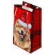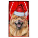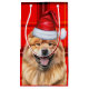 A cute Chow Chow dressed for the season in Santa's hat, pairs with a red and black holiday plaid to create a wonderful gift bag for the dog lover's holiday season.