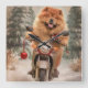 Chow Chow Dog Riding Motorcycle Christmas Square Wall Clock