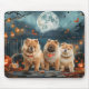 Unleash the spooky spirit with this eerie Halloween design featuring a pack of dogs under a dark, moonlit sky, surrounded by flying bats and glowing pumpkins. Perfect for those who love a touch of frightful fun with their furry friends!