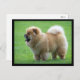 Aww...who can resist the cute face of a fluffy Chow Chow puppy dog? This charming postcard features a Chow Chow puppy highlighted against a green grassy background This sweet Chow pup is ready to help you send greetings to family and friends.