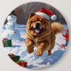 Chow Chow Running in Snow with Christmas Hat 6 Cm Round Badge