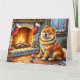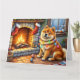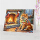 Chow Chow Sitting Fireplace with Christmas Lights Card