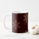 Enjoy your favorite drink in seasonal style with this festive snowflake mug. Featuring elegant gold snowflakes on a rich deep red background with subtle sparkling details, this design brings warmth and holiday charm to every sip. Perfect for cozy winter mornings, Christmas gatherings, or as a thoughtful seasonal gift, it adds a touch of classic holiday elegance to your drinkware. ☕❄️✨