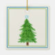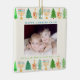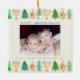 Happy Chrismukkah Christmas Hanukkah personalised Holiday ornament! Christmas Trees, Menorah's, and Dreidels adorn this photo personalised Holiday ornament. Add your family name and year. This elegant square holiday ornament design has a variety of watercolor pine trees, menorah's, and dreidels surrounding your photo. Happy Holidays greeting can be personalise with your photo and information.