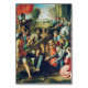 It shows the common subject of Christ Carrying the Cross to his crucifixion, at the moment when he fell and his mother suffers a spasm of agony. All the emotion of the painting is densely crammed into the foreground and the background is similar to that of a stage set with distant groups of people and crosses.