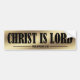 Christ is Lord bumper sticker on a gold tone faux metallic background, from the Bible verse Philippians 2:11