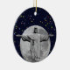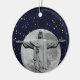 The statue of Christ the Redeemer with a big moon behind, and a sky of stars
