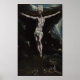 Christ on the Cross by El Greco, c. 1600, is an oil on canvas painting depicting the crucifixion of Christ. The expressively elongated form of the body of Christ is nailed into the cross that fills the composition from top to bottom, set into the hilltop at bottom surrounded by human skulls and bones. The ghostly, elongated forms of the figure are set against a black sky with dark clouds that dwarf the distant landscape. Jesus gazes upward towards Heaven as he endures his Passion, while above his head a sign inscribed in Hebrew, Greek and Latin proclaim the Nazarene to be king.