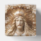 This Italian-inspired favor box features an ornate faux 3D-style image of Christ Jesus the King on all four sides, crowned with radiant sun rays and framed in gold and pearl accents. A striking and meaningful choice for baptisms, confirmations, First Communion, Christmas, or any sacred celebration—perfect for holding rosary favors or small sweets.