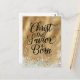 Beautiful holographic gold with faux glitter edging reads, "Christ the Saviour is born" in calligraphy typography.