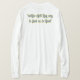 I love this shirt. I had written to the artist asking her if this picture was available on a shirt, and she wrote me back telling me where I could find the shirt. These shirts can be custom made to have a different saying. I loved this saying and went with it. The artist wrote me back later to tell me that she had seen my order go through. How's that for service? Pretty special. It's just as displayed. Perfect!