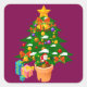 This image shows a decorated Christmas tree in a pot with colourful ornaments, ribbons, bells, and a golden star on top. At the bottom, there are gift boxes, making it a festive and joyful sticker for the holiday season.