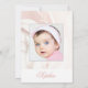 Christening Baptism Photo Girl Pink Rose Silver Invitation