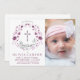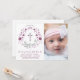 This beautiful christening, baptism photo invitation is the perfect invite for your special religious occasion. It features a picture area and a place for your personalised text beneath a pretty floral wreath encompassing a cross.