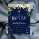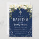 Christening Blue Silver Floral Boy Baptism Invitation
