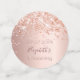 A rose gold background decorated with confetti. Personalise and add a date and name/event. Dark rose gold coloured letters. Some confetti chips with name and date, others with a cross. Add your own photo on two of the chips.