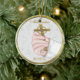 A beautiful keepsake ceramic ornament for baby's christening or baptism. Design features baby's hand holding gold cross on lace background with gold look frame. Easy to personalise for your special occasion.
