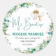 Christening Favours Cute Boy Angel & Green Flower Classic Round Sticker