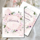 The design is pink floral wreath with a silver coloured text that is easily changed to your information.