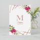 Invitation design for the christening of your son or daughter with a cheerful modern geometric floral design. A real gold pink initial over the baby's name is the main reason for the invitation.