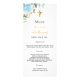 Christening reception menu card. Personalise and add a name, date and the menu. A chic white background. Decorated with a watercolored light blue rose and green eucalyptus leaves, sprigs, greenery, faux gold leaves. A faux gold cross.