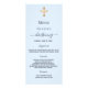 Christening reception menu card. Personalise and add a name, date and the menu. A light background, black text. A faux gold cross.