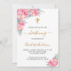 A white background decorated with pink florals. Personalise and the childs name and ceremony details. Black and golden coloured letters.