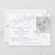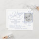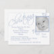 This elegant and contemporary Baby Boy Christening invitation has light blue text and lovely scroll work surrounding the photo frame. There is plenty of customisable text for you to add your party information. Just upload your baby's photo and your task is complete!