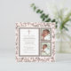 Pretty pink and brown Christening invitation with decorative cross and paisley frame with two photos. Customise for baptism, communion or any special religious event.