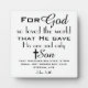 This tabletop plaque has the Christian bible verse John 3:16 - For God so loved the world that He gave His one and only Son, that whoever believes in Him shall not perish but have eternal life. Black and white typography. Makes a wonderful gift for a religious person.