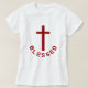 A simple and striking text design for Christians that features a large red cross in the centre and the word "Blessed" in a bold red stamped look font curved up under the cross. Choose your favourite background colour and style, even add a name to really personalise it! Perfect for churches and youth groups.