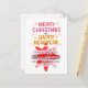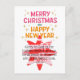 Product Features pink and red star and the typography greeting, Merry Christmas and a Happy New Year!