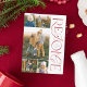 This multi photo Christmas cards features space for five family photos with unique lettering of the word "Rejoice" along the side. Customise it to change the colours to match your family photos!