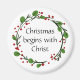 Christian Christmas Scripture Sticker Scripture with red, green Holly wreath Christmas begins with Christ