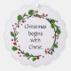 Christian Christmas Scripture Sticker Scripture with red, green Holly wreath Christmas begins with Christ