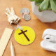 Keychain with the illustration of a cross over yellow light rays.