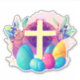 Christian Easter Cross, this beautiful design features a Christian Easter Cross with Colourful Flowers and easter Eggs.