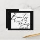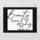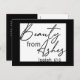 Make a bold statement with our modern postcard design featuring black and white blocks on the front. In elegant script, the message of faith reads "Beauty from ashes" - from Isaiah this verse embodies resilience and hope.