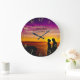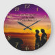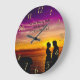 Christian Faith clock with a silhouette of a young couple in love standing by the sea shore with the beautiful blue purple and orange and yellow sky light. and the text
