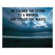 Christian Art, Christmas Faith Inspirational Wall Print, with text: He calmed the storm to a whisper, and stilled the waves. Psalm 107:29 NLT. Be inspired and lifted up with this Christian Art Creation as it reminds you that Jesus calms the storms of life! Inspire and Be Lifted Up.